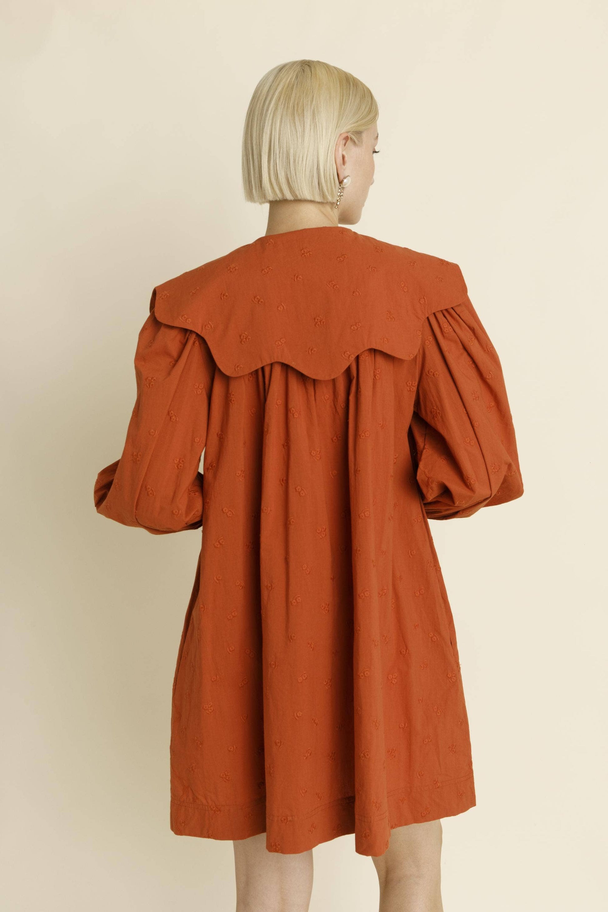 Terracotta Exaggerated Scalloped Collar Mini Dress