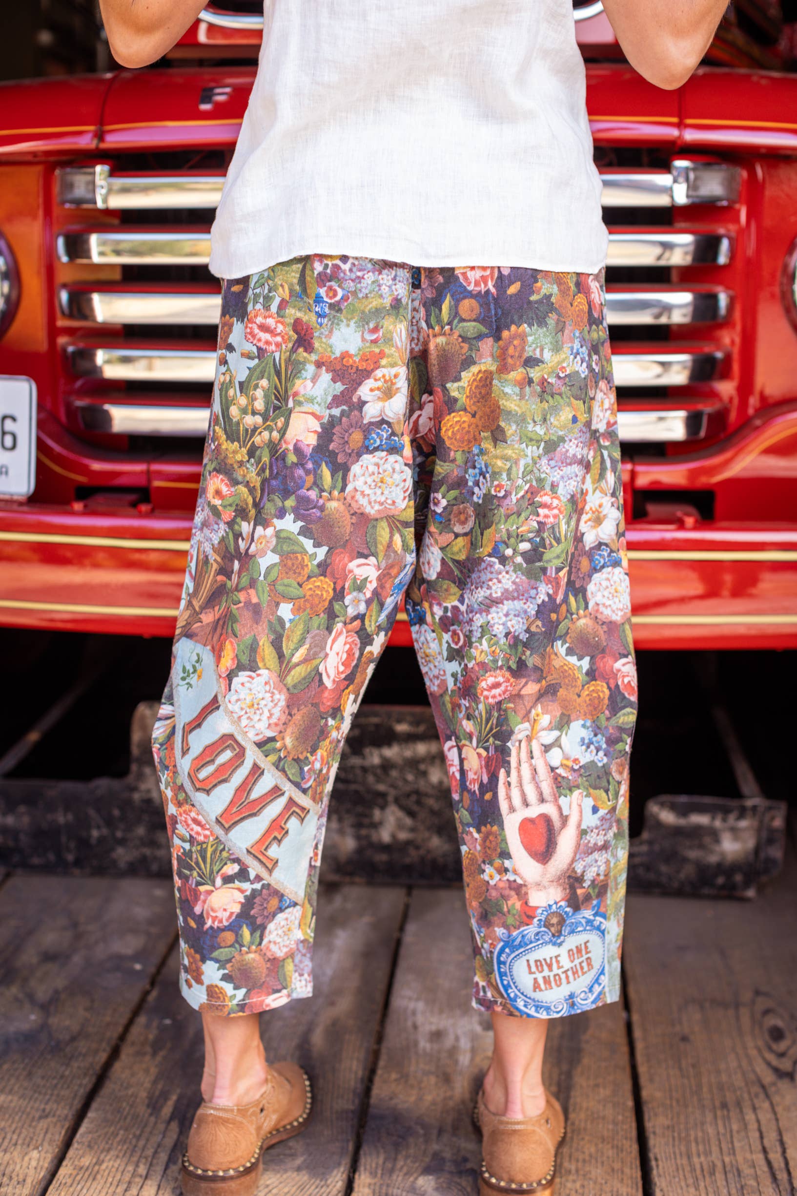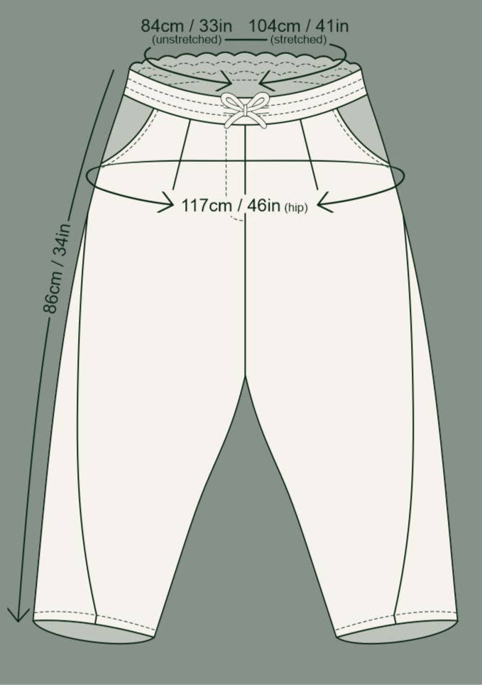 Our highly anticipated Artist Pants are made from a natural blend of linen and bamboo/wood viscose, & feature a drawstring front, elastic waist back panel, pockets, cropped length, and a flattering lantern hem design. The custom-woven fabric is easy to care for and so comfy. They are one-size and will fit approximately size 4/6 (S) to 10/12 (L).